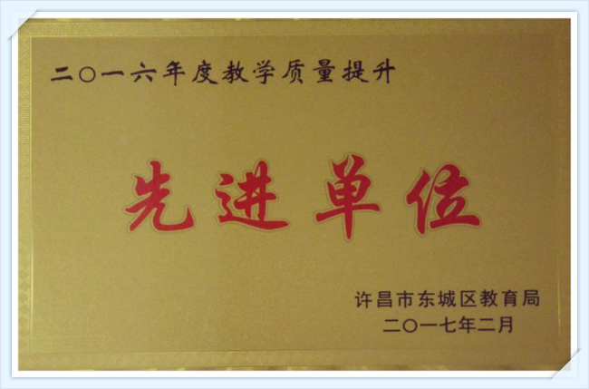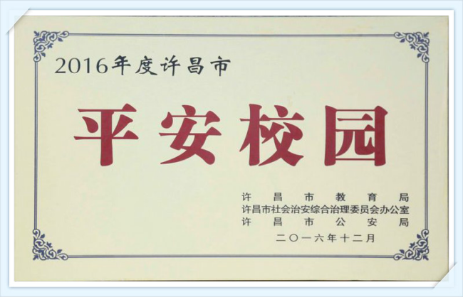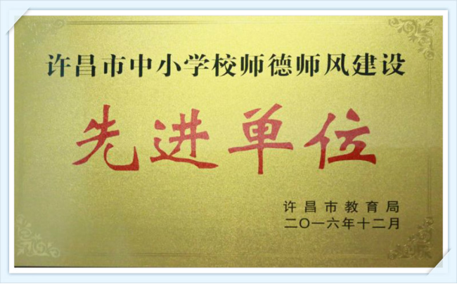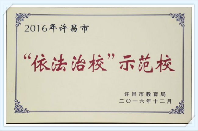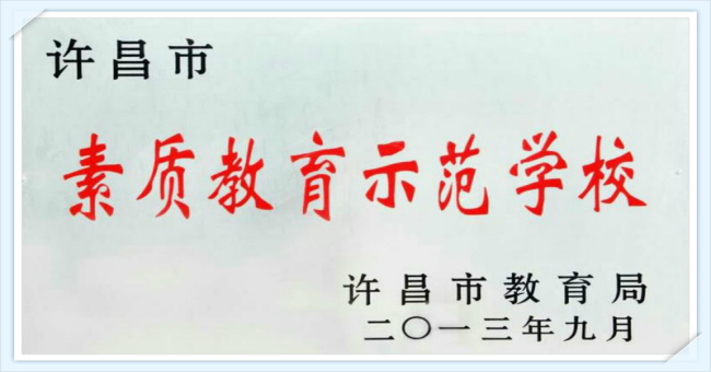 规范办学,捷报频传。先后荣获“许昌市素质教育示范校”、“全国中小学校园足球特色学校”、 “许昌市平安校园”、“许昌市依法治校示范校”、“许昌市师德师风先进单位”、“许昌市绿色学校”、“许昌市东城区教育质量提升先进单位”等。