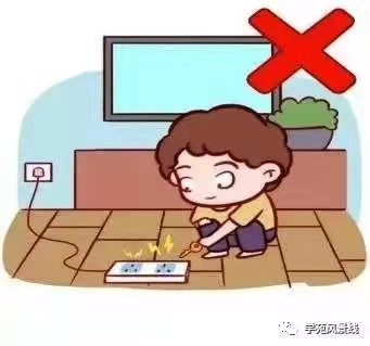 (4)告诉孩子不要用湿手触摸或湿抹布触碰电器。