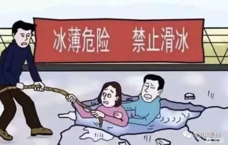 (2)注意防溺。禁止在结冰的水面上滑冰,冰面可能轻薄,承载力低,踏上容易落水。以防摔伤、溺水事故发生。
