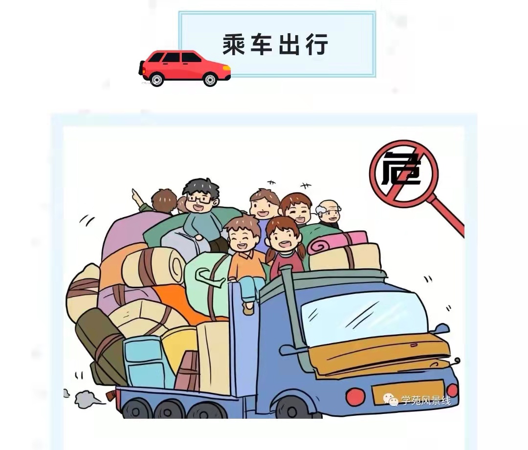 5.外出乘车不乘坐低速载货汽车和拖拉机、黑摩的等非客运车辆,不乘坐超员车辆,预防和减少各种安全事故的发生。