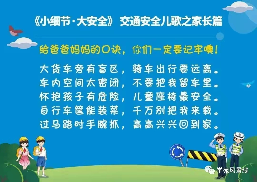 道路千万条,安全第一条,交通安全教育应从小做起,让孩子们从小学习,懂得遵守交通安全知识,文明出行。同时也请全体教师及家长朋友们以身作则,戴好安全盔,系好安全带,自觉遵守交通规则,让我们一起守护孩子的平安健康,携手筑牢安全防线,为孩子的生命安全和身体健康保驾护航,为文明城市创建贡献自己的力量!
