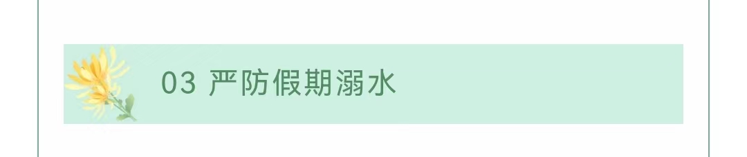 严防溺水:没有家长陪同不准单独到溪边、水库和池塘、工地等危险处所玩耍。重点做到六不: