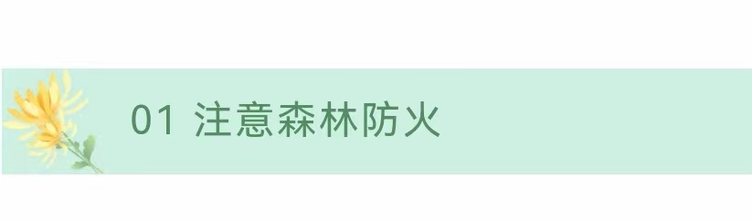 文明祭扫:清明节是我国缅怀先人、扫墓祭祖的传统节日,受传统习俗影响,烧纸、放鞭炮等野外用火易引发森林火灾事件。