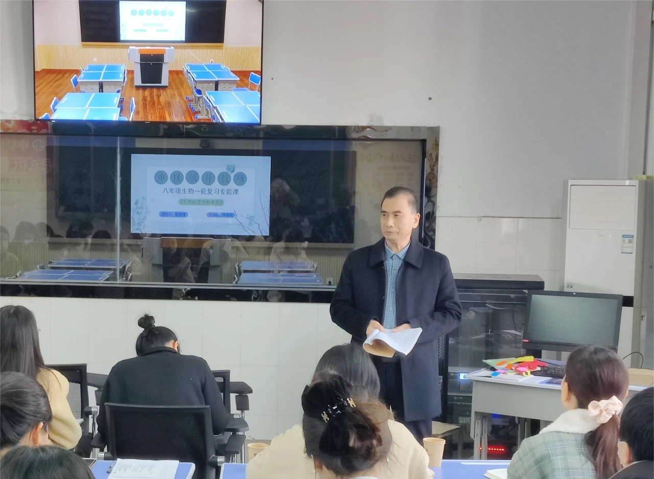 人间最美二月天,春日教研绽新颜!为促进教师专业成长,为落实新课程标准核心素养,提高中招一轮复习效果。2023年3月3日,许昌市普通教育教学研究室生物教研员段长彦组织市区全体生物学科教师在许昌学院附属中学,开展了以八年级生物一轮复习为主题的市区教研活动。此次活动为教师们相互学习,相互借鉴、共同提高搭建了平台。