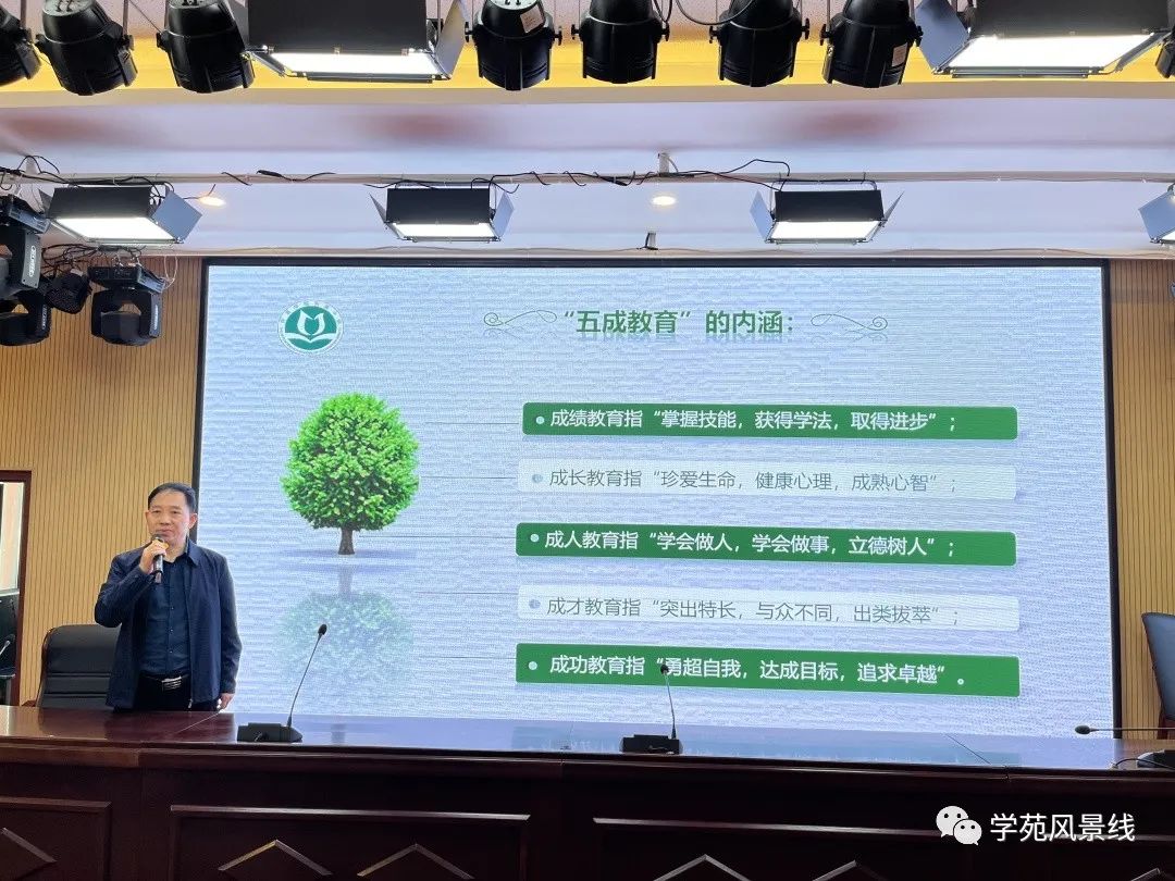 接着,教务处主任李晓华向与会老师详细介绍我校“五成教育”的发展理念,她分别从“五成教育”提出的背景、理论依据、实施路径、取得成果等进行阐述,充分满足学生需要,充分挖掘学生潜能,启迪学生智慧,在素质教育方面取得累累硕果。