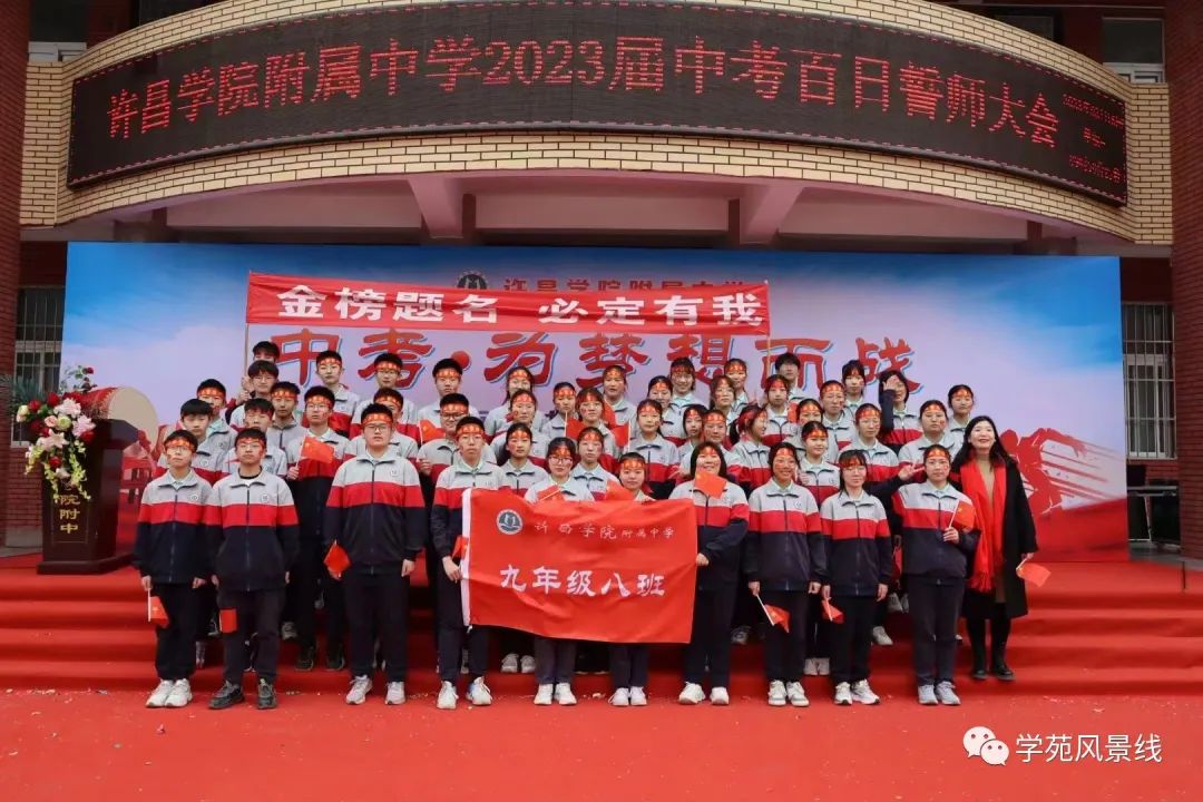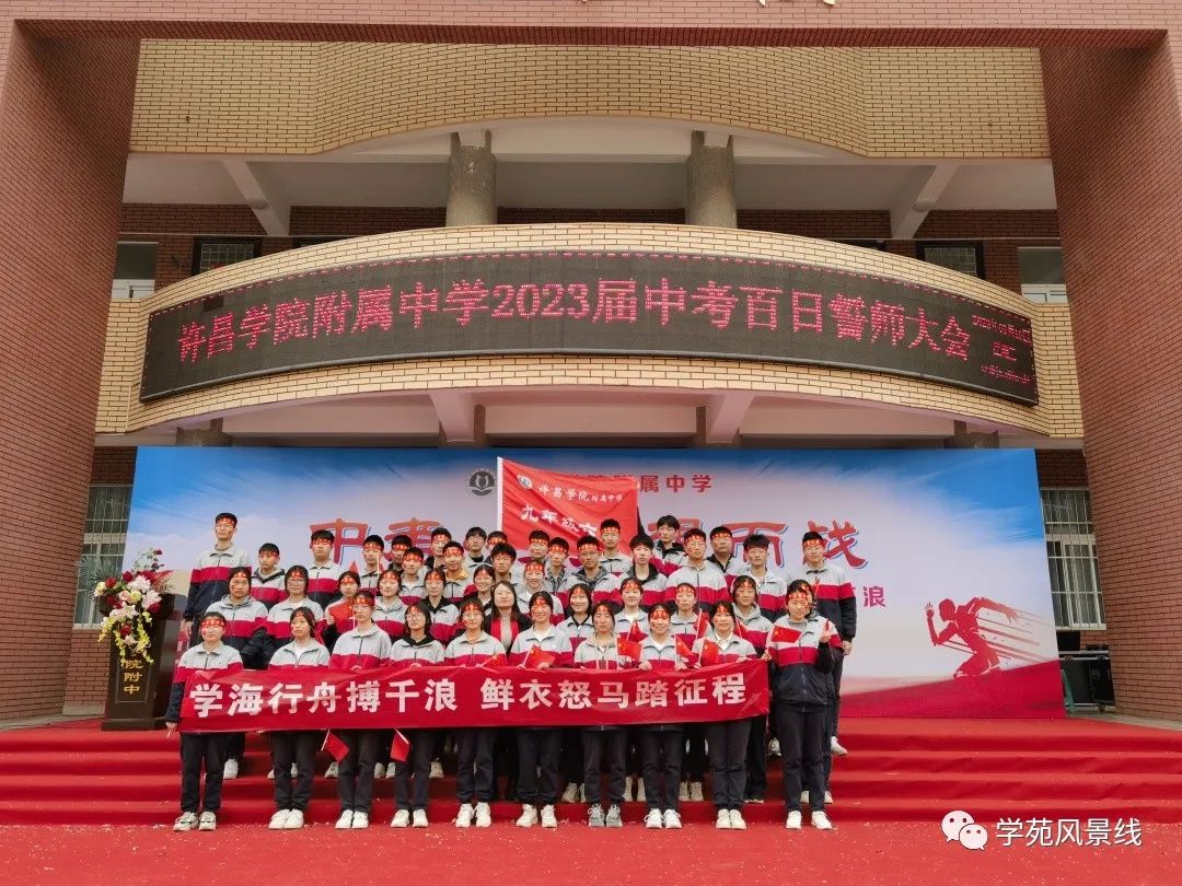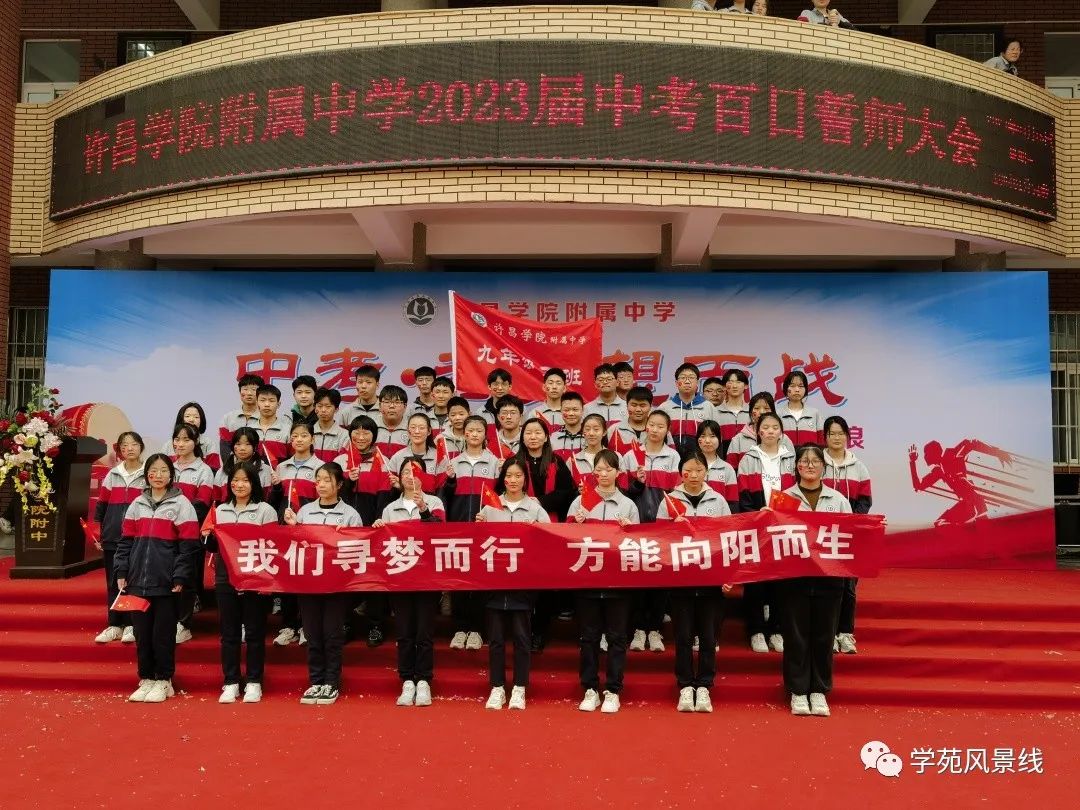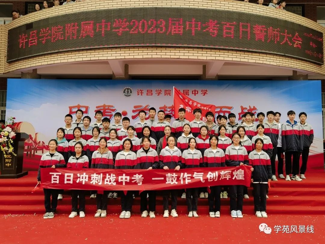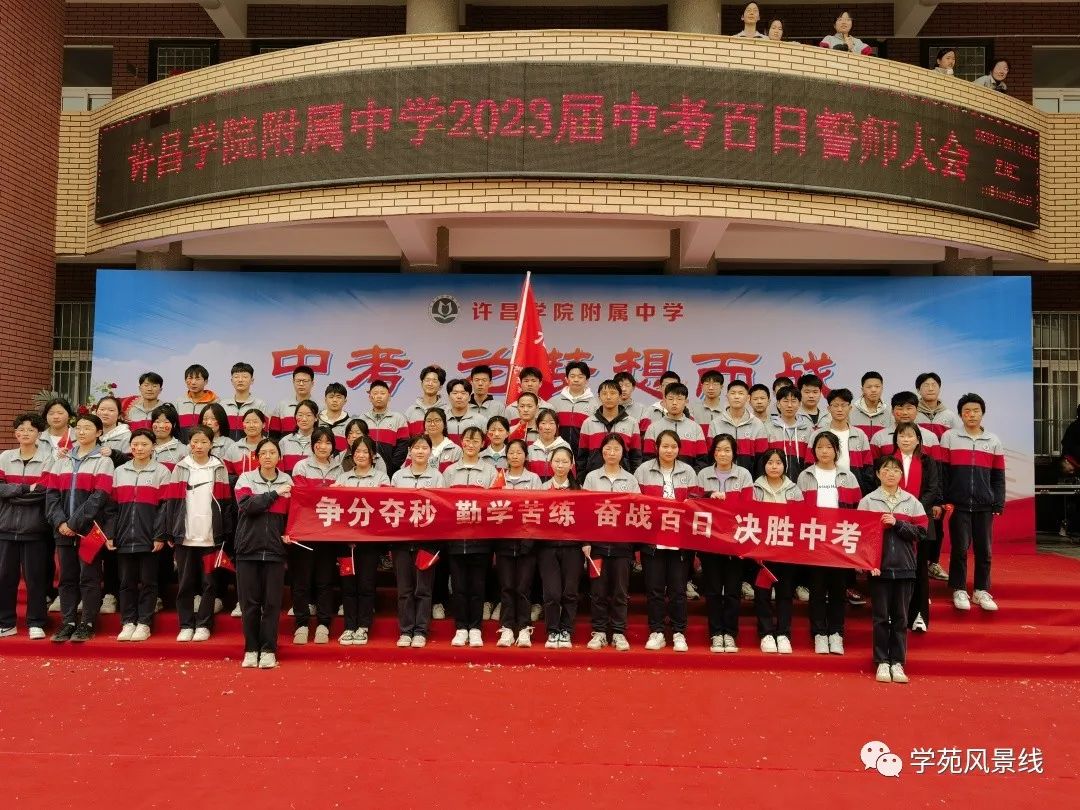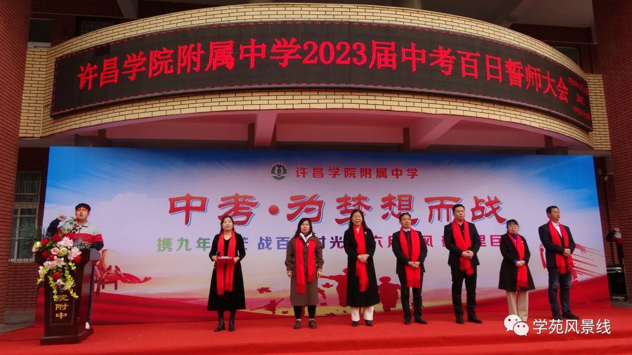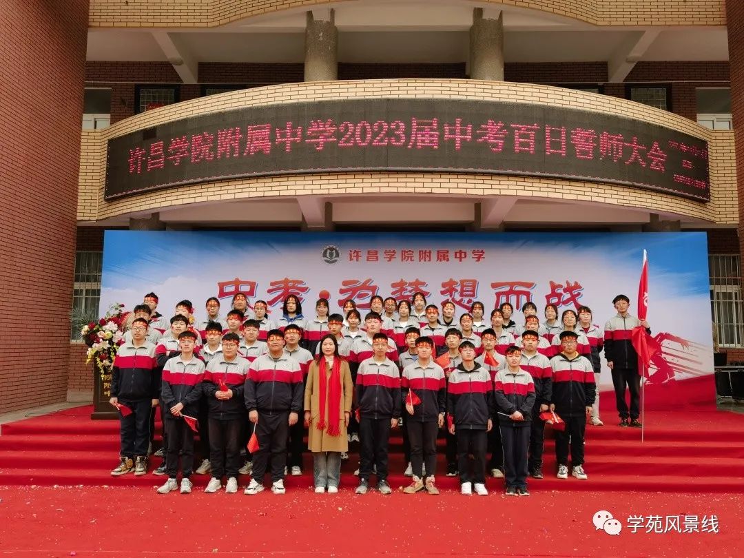 春暖花开之际,决战冲刺之时,3月15日上午9:00,许昌学院附属中学隆重举行2023届中考百日誓师大会,擂响了初三冲刺的嘹亮战鼓。学校领导班子、九年级全体师生及家长代表出席了大会,会议由政教处主任周俊英老师主持。
