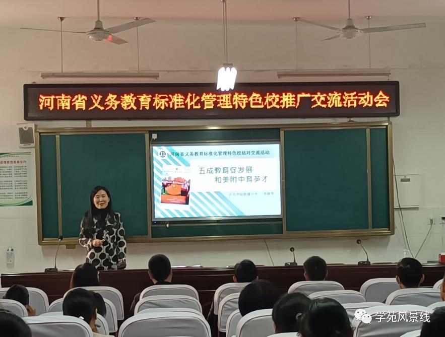 教务处主任李晓华老师为邓庄中学的老师们带来“五成教育促发展 和美附中育英才”为主题的讲座,李老师主要从“五成教育”的内涵和“五成教育”的落实两个方面细致、接地气地与在场同行们进行了深入交流与探讨,通过一张张活动图片,生动有趣地分享了“五成教育”背景下的教育教学成果,深得邓庄中心学校老师的赞赏。